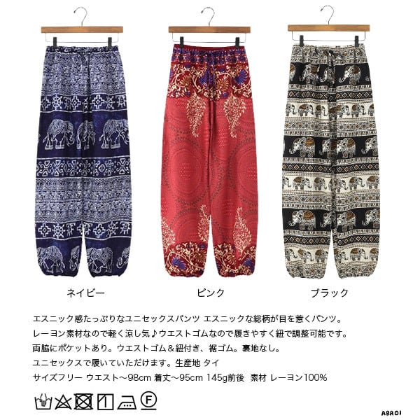 【 送料無料 メール便発送 】 イージーパンツ アジアンパンツ エスニックパンツ タイパンツ ぞうパンツ 柄パンツ 男女兼用 リラックスパンツ 涼感エスニックパンツ|レディース メンズ兼用|軽量&リラックス設計 ウエストフリー&ポケット付き ボトムス 大人カジュアル パンツ 春夏 ウエストフリー ヨガパンツ レーヨン素材 アウトドア お家時間 ボトム ヨガ 涼しい クール 履き心地も涼しく軽やかなパンツ おすすめ アブロイ ABROI