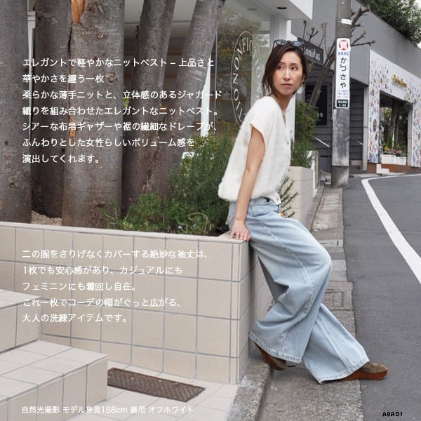 Related words [Free domestic shipping, mail delivery] Sheer vest, tops, vest, gilet, women's outerwear, thin knit vest, elegant, jacquard weave | V-neck, sheer, draped design, sophisticated, also great for layering ◎ Feminine, stylish, light, covers upper arms, spring, summer, autumn, sleeveless, off-white, gray, jacket, front opening, layering, casual, busy mornings. Just pair it with a tank top or camisole for a sophisticated and relaxed adult look. Just pair it with your usual denim or skirt for an instantly sophisticated look. Everyday coordination, recommended, ABROI