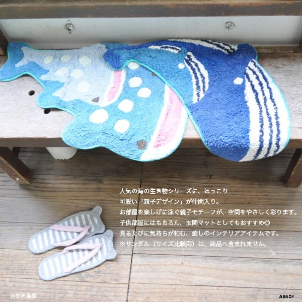 #ジンベイマット #クジラマット #お魚マット #玄関マット #インテリアマット #マルチマット #バスマット #リビングマット #ファミリーマット #親子マット #子供部屋インテリア #キッズインテリア #海モチーフ #スマイル雑貨 #ハッピーアイテム #おしゃれインテリア #フローリングマット #サイドマット #アブロイ #ABROI