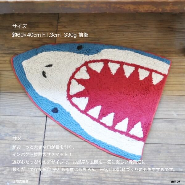 【 送料無料 追跡メール便発送 】 サメマット シャークマット 玄関マット 室内 屋内 マルチマット アニマルマット おしゃれ かわいい キッズ ファミリー 玄関 キッチン リビング バス サイドマット フローリング対応 綿80% ポップ インパクト大 毎日インパクト 会話が弾む 毎日ドッキリ ハッピーマット 開運 風水 笑顔になる お帰りマット サメグッズ お魚グッズ おすすめ アブロイ ABROI