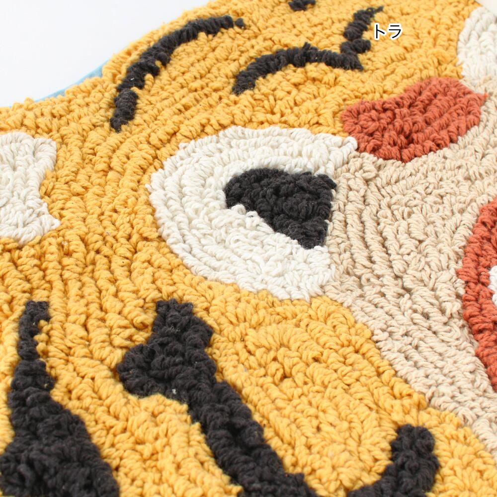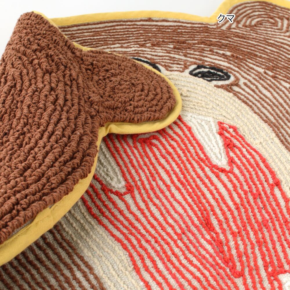 玄関をはじめ、さまざまなインテリアとしてお使いいただけます。見ているだけで気持ちが穏やかになりそうな、やさしい表情のマット。「がおー!」と元気に威嚇しているけれど、怖くないのがポイント。最強アニマル仲間たちが、毎日の「おかえり」を楽しく迎えてくれます。※お手入れの際は手洗いでお願いします。洗濯機のご使用はできません。また色落ちすることがありますので他の商品と分けてお洗いください。繊維の抜け、多少の縮みなどが生じることがあります。お部屋のおしゃれなアクセントにもピッタリです。生産地 インド
