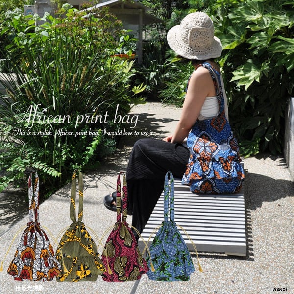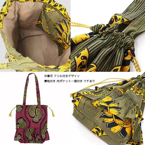 #アフリカンバッグ #可愛い巾着バッグ #フリルバッグ #女性用バッグ #アフリカプリント #おしゃれトート #デイリーバッグ #アブロイ