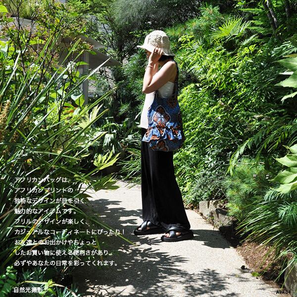 【 送料無料 メール便発送 】 アフリカンバッグ アフリカンプリントバック バッグ BAG トートバッグ A4対応 アフリカ柄 巾着バッグ フリルバッグ レディース 女性 フリルトート おしゃれで個性的な巾着バッグ アフリカの美しいプリント柄が魅力のアイテム スカートのような可愛いフリル 女性らしさを引き立てます マチあり 収納力抜群 絞ってもそのまま持ち運べて、自分好みにスタイリングできるのがポイントです。お出かけやデイリーユースにピッタリ あなたのコーディネートに おすすめ アブロイ ABROI