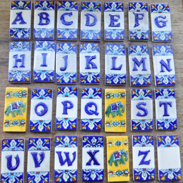 全てのアルファベットとスペースタイルを合わせて、ウェルカムボードや額に入れてインテリアとして空間を演出。陶器で作り上げられているので、表札にもおすすめ。生産地 インド