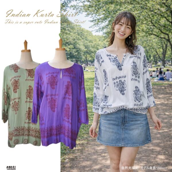 【 送料無料 メール便発送 】 クリシュナシャツ メンズクルタシャツ 7分袖 メンズ レディース ユニセクス クリシュナプリント アジアンシャツ ヨガシャツ トップス クリシュナ おしゃれ プルオーバー プリント エスニック 神様シャツ Lサイズ表記 ゆったりコーデ 春 夏コーデ ナチュラル カジュアル ユニセックス Lサイズ リラックスウェア 部屋着 外出用 白シャツ イベントシャツ スピリチュアル モチーフ ホワイト グリーン パープル 白 緑 紫 着心地 おすすめ アブロイ ABROI