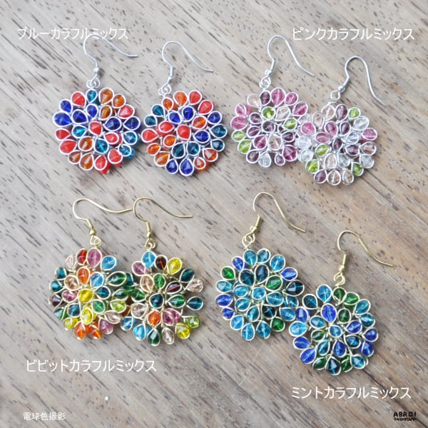 Related words [Free domestic shipping, mail delivery] Beaded earrings, colorful, wirework earrings, women's, dangling, oriental, Asian, ethnic, stylish, colorful, flower, spiritual, adult earrings, adult accessories, stained, stylish, beadwork, circle earrings, see-through depending on the light, sparkling, handmade, popular earrings, stylish accessories, made in India, recommended, ABROI