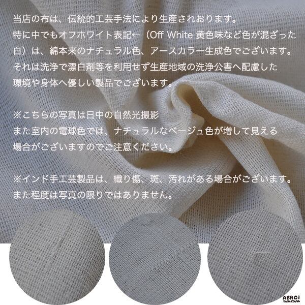 ※綿ワタを水洗いのみで生成された素材は、綿の本来の色を感じて頂けます。特にオフホワイトは綿本来の白(ナチュラルカラー)でございます。