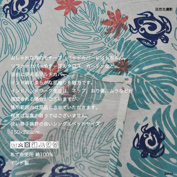 【 送料無料 追跡メール便発送 】 ベットカバー マルチカバー テーブルカバー シングル 長方形 シーツ 150x225cm 前後 スターフィッシュ ヒトデ ホヌ ウミガメ 波 海 モンステラ モチーフ ソファーカバー ファブリック カーテン インド綿 カーテン ビーチ リゾート ハワイ アウトドア カバー テーブルクロス ベッドカバー マルチカバー シーツ マルチクロス ソファー カーテン ファブリック 布 背景 インド綿 安眠効果 カーテンにも おすすめ アブロイ ABROI